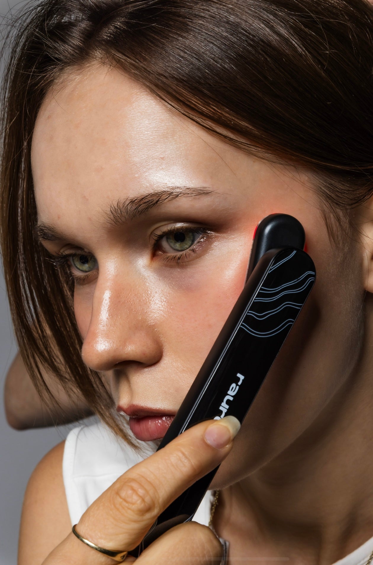 Rockstar Wand je kompaktní obličejový přístroj, který spojuje EMS mikroproud, 630 nm červené světlo, 42 °C teplo, sonické vibrace a 90° otočnou hlavici pro precizní práci na konturách tváře.